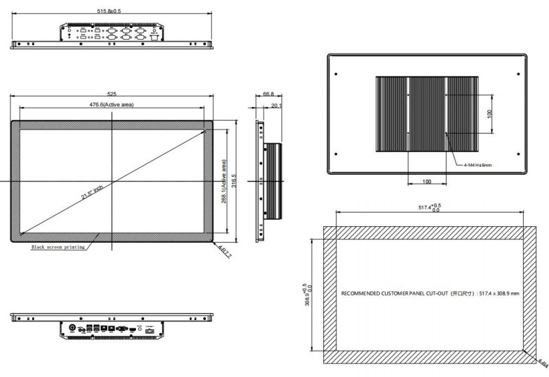 | 尺寸 | 517.4 x 308.9 mm (开孔尺寸) | |